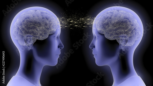 3D rendered illustration of two people communicating by telepathy, exchanging thoughts and information from brain to brain