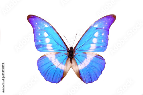 Butterfly : Blue Morpho Butterfly (Morpho Helena) , isolated on white background.