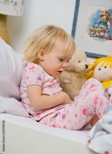 little girl in bed witch stomackache