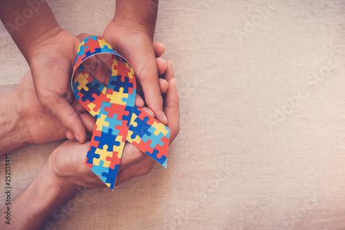 Hands holding puzzle ribbon, World Autism Awareness Day, Autism spectrum disorder