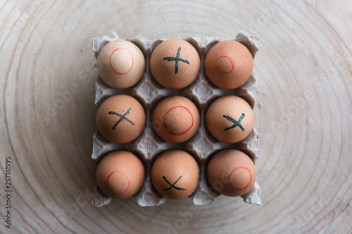 Jajka pomalowane na Wielkanoc -kółko, krzyżyk.