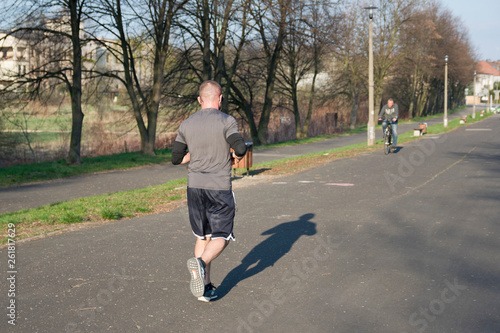 Jogging. Młody mężczyzna ćwiczy biegi na świeżym powietrzu.