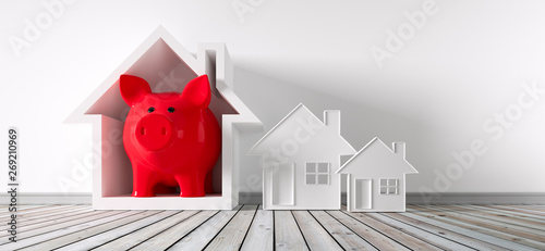 Rotes Sparschwein im Symbolhaus - helles Umfeld