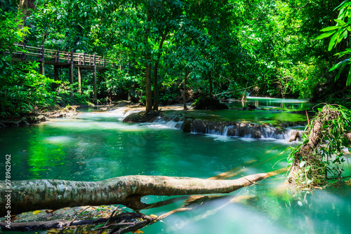 Landscape Waterfall Than Bok Khorani. Colorful forest in the rainy season,Colorful forest in the rainy season, The water falls in the rainy season, Emerald water stream, waterfall in the deep forest.