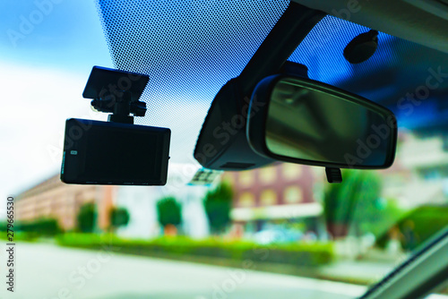 [安全運転イメージ] 自動車の安全装備のドライブレコーダー(ドラレコ)とバックミラー