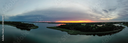 Warmia, mazury, zdjęcia jeziora o zachodzie słońca z drona