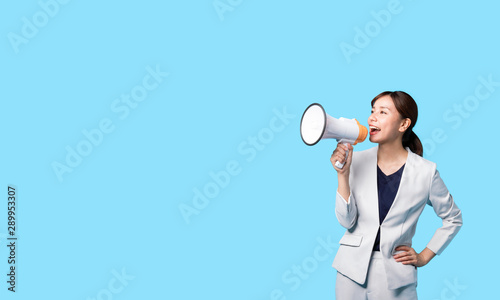 拡声器で叫ぶ女性