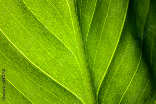 green leaf of the plant with the structure of nutrient vessels, the biochemistry of photosynthesis, processing of carbon dioxide by plants and the release of oxygen, plant respiration, chlorophyll