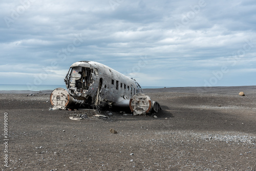 Wrak samolotu na plaży, rozbity amerykański samolot, Islandia
