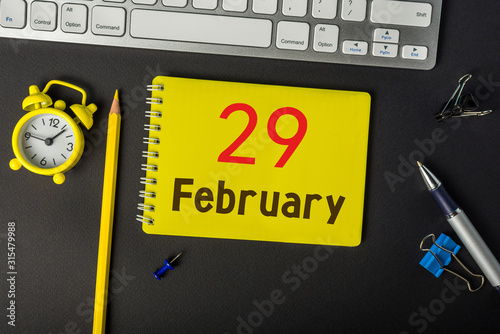 February 29th. Calendar for February 29 on workplace. Leap year, intercalary day, bissextile