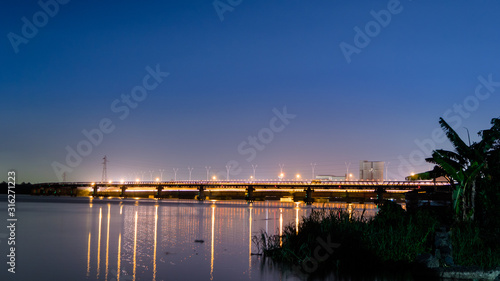 Douala, Littoral/Cameroon-January 10th 2020: A side and nigth view on the Wouri bridge in the Cameroon's economic capital, Douala.