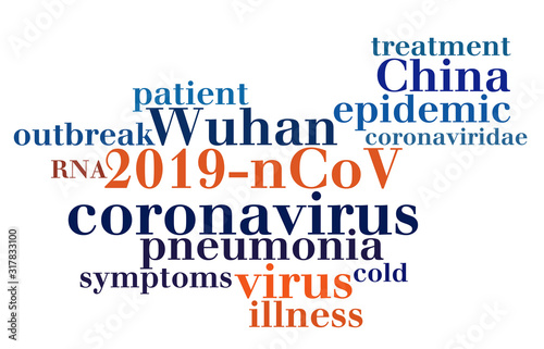 Wuhan coronavirus concept in word tag cloud on white background. Word tag cloud about novel coronavirus 2019-nCoV