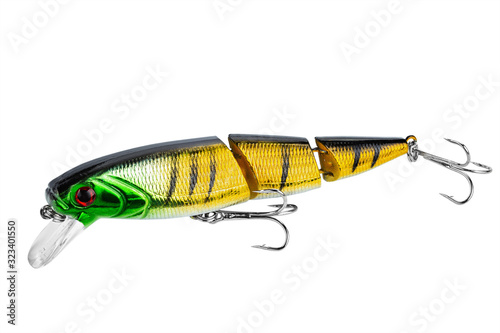 Fishing bait tackle and baubles for fishing on a white background, wobbler. Field with Clipping Path.