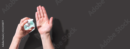 Applying sanitizer gel - healthcare and hygiene concept
