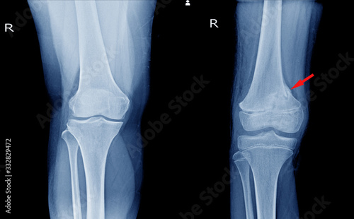 X-ray Knee AP views Showing Normal knee joint and fracture distal femur.