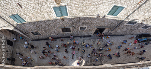 Gente caminando por las calles de Dubrovnik, vistas cenitales, Croacia, verano de 2019