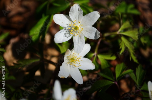 Anemone nemerosa, macro of a beautiful spring forest flower. Wood anemone (Anemone nemorosa) flower with soft focus.
