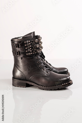 Damskie obuwie, jesienne buty, botki i kozaki na wyizolowanym tle.