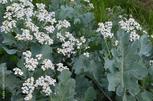 Modrak morski, kapusta morska, Crambe maritima, w fazie kwitnienia
