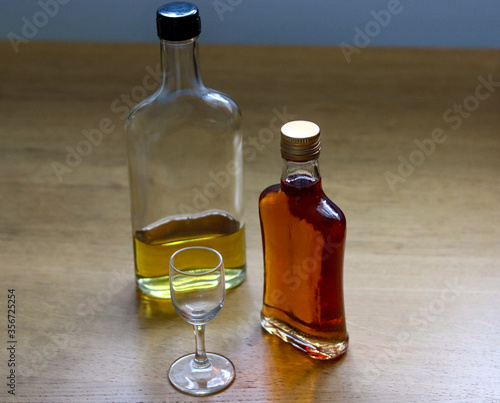 homemade alcohols in glass bottles