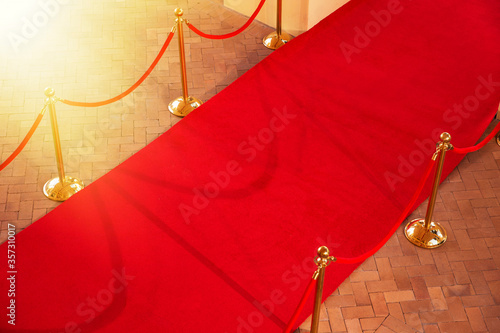 High angle view of empty red carpet