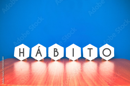 palabra hexagono pared madera azul blanco letras reflejo texto habito