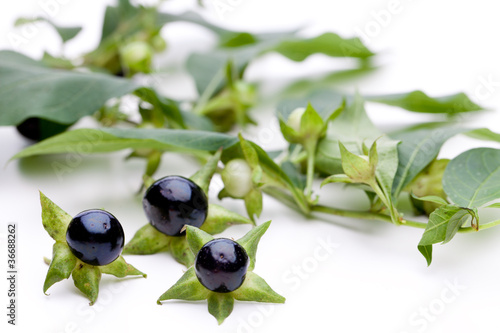 Tollkirsche (Atropa belladonna) - Beeren mit Kraut