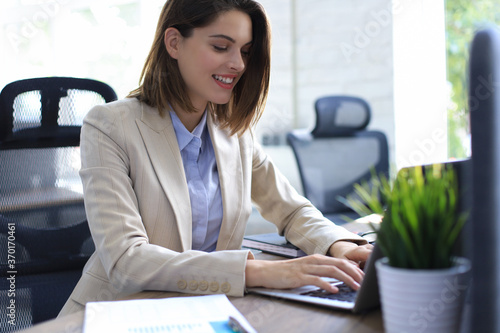#642115536Confident Businesswoman Working on Laptop in Modern Office