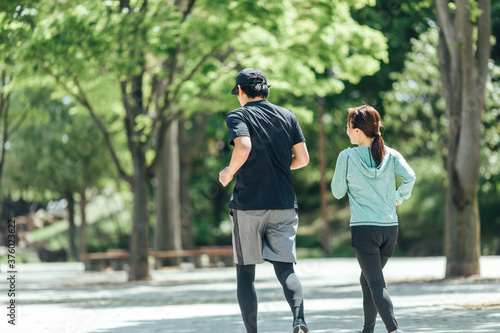 ランニング・ジョギング・ウォーキングする男女(アジア人・中国人・日本人・韓国人)