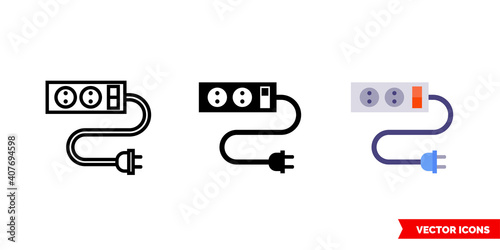 Power strip icon of 3 types color, black and white, outline. Isolated vector sign symbol.