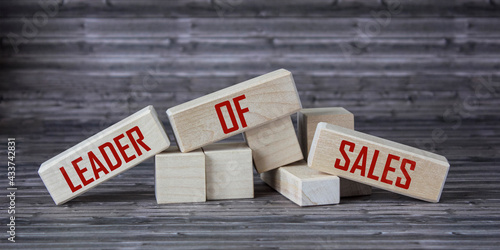 Business concept. On a wooden background and on wooden blocks -LEADER OF SALES
