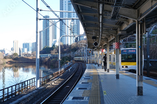 市ヶ谷駅ホームから江戸城外濠沿いのビル群