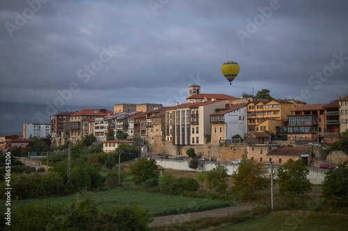 city of Medina de Pomar, Burgos, Castilla y Leon. with Hot Air Balloon