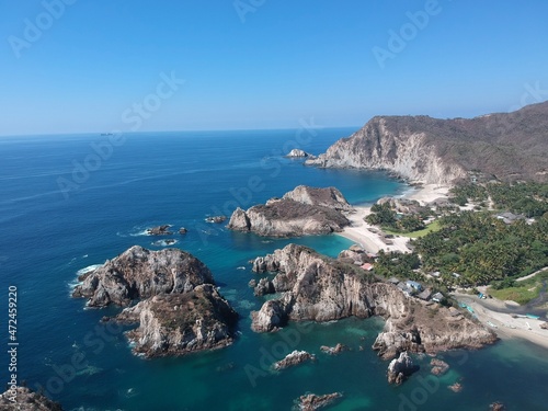 The paradisiacal beach of Maruata, located on the coast of Michoacan, Mexico. an earthly paradise still virgin.
