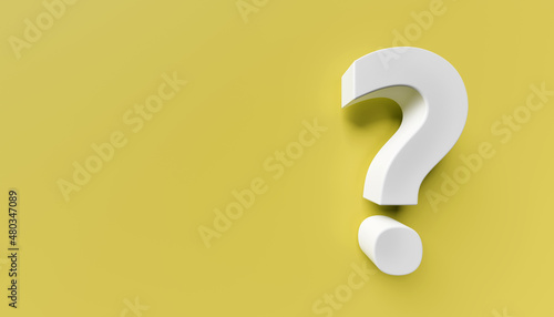 White question mark on yellow background. 3d rendering. Copy space on the left