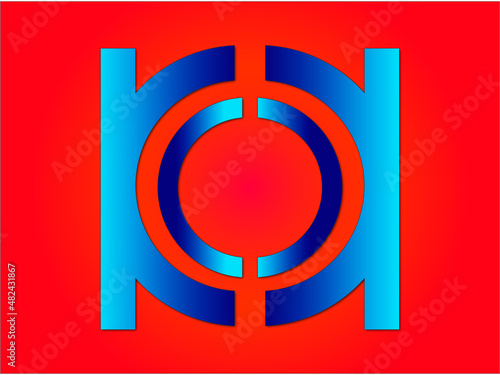 Grafika wektorowa przedstawiająca obiekt w kolorze niebieskim, utworzony w wyniku przekształceń koła i prostokąta. Obiekt umieszczony jest na czerwonym tle.