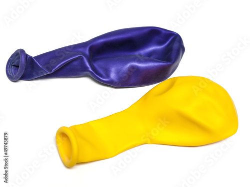 #152618587A deflated yellow balloon, showing wrinkles and folds, with a smooth texture.