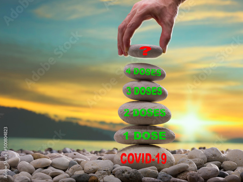 Covid 19 vaccine calendar concept. The question of 1,2,3,4 doses of vaccine and after. Expression of grafting level with heap stones.