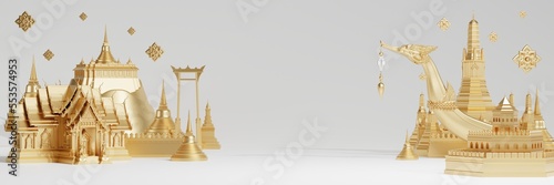 3d The iconic of thailand travel concept the most beautiful places to visit in thailand in 3d illustration, thai architecture and tradition heritage.