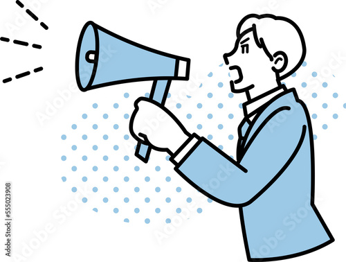 拡声器を使って叫ぶビジネスマンのイラスト