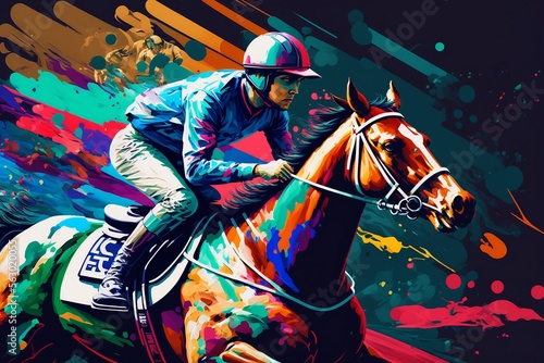 courses hippique, chevaux et jockey stylisé en peinture moderne - illustration ia