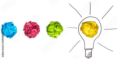 Zerknülltes Papier mit Glühbirne als Symbol für die Entwicklung einer guten Idee