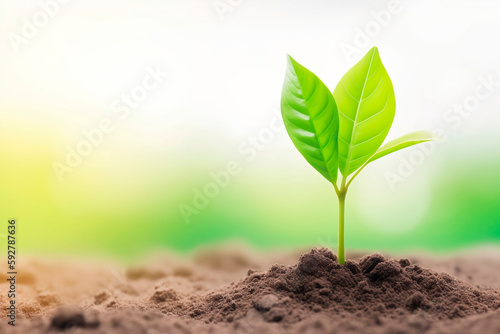 Pequeno broto de planta crescendo em solo fértil e úmido