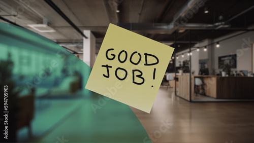 Good job ! A small paper stuck on the window, where it is written a compliment for a colleague.
