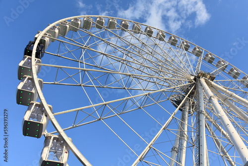 Koło, Diabelski Młyn, wesołe miasteczko,Toruń, park, niebo, frajda, rozrywka, coaster, rolki, kolejka górska, architektura, wysoki, emocje, stal, podniecenie,