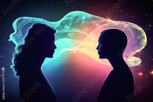 the humans communicate with each other telephatically, illustration, future concept, generative ai