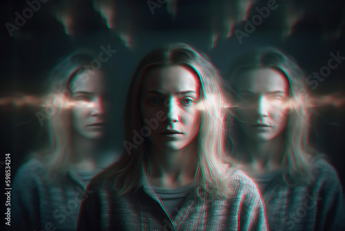 portrait of woman with mental disorders and bipolar disorder in depression and stress. Generative AI