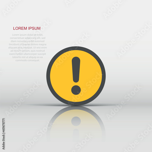Exclamation mark icon in flat style. Danger alarm vector illustration on white isolated background. Caution risk business concept.