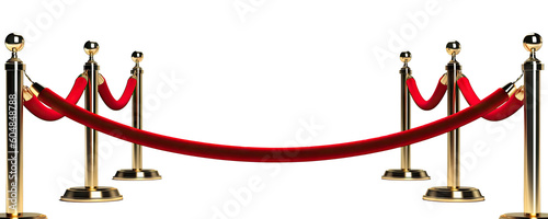 Stanchions with velvet ropes isolated on transparent background - Generative AI