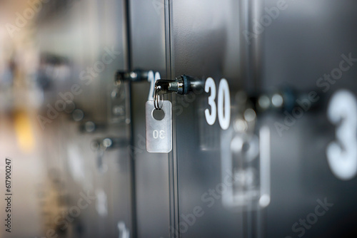 Klucz w zamku do szafki szkolnej w szatni.